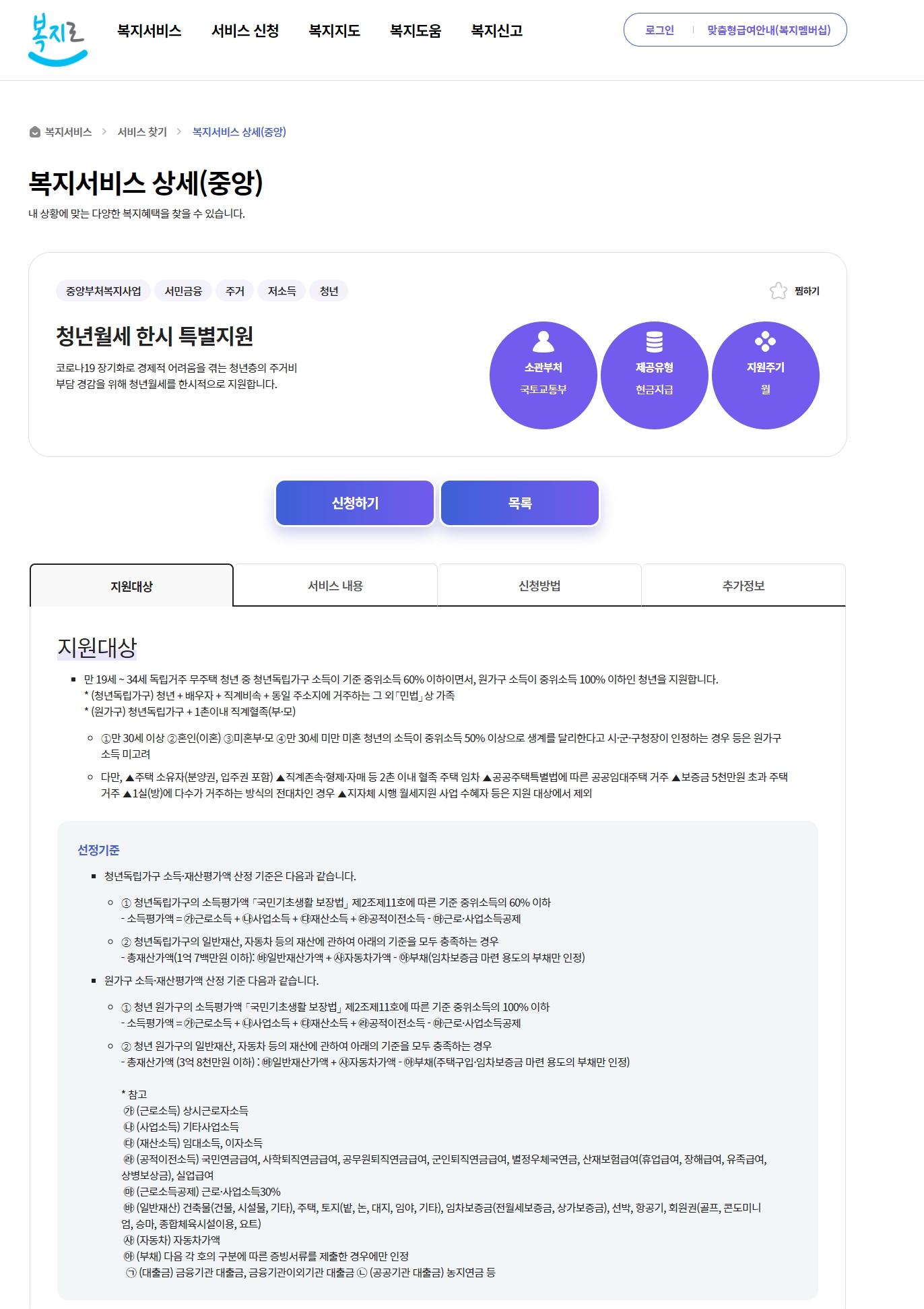 신청을 원하는 청년은 마이홈포털(www.myhome.go.kr)과 복지로 누리집(www.bokjiro.go.kr)에서 자가 진단을 통해 지원 대상인지 확인할 수 있다.