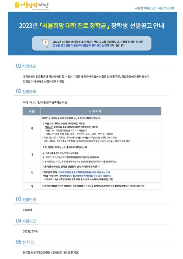 또 현재 수급자, 차상위 계층에 해당하거나 올해 1학기 또는 2학기 한국장학재단 학자금 지원구간 4구간 이하에 해당해야 한다.