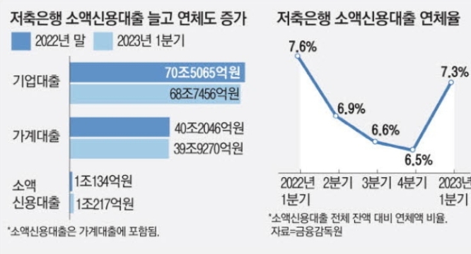 리스크가 높은 고금리 상품 특성상 연체율도 높다. 저축은행 소액信用貸出 연체액은 올해 1분기 746억원으로, 지난해 말(657억원)보다 90억원가량 늘었다.