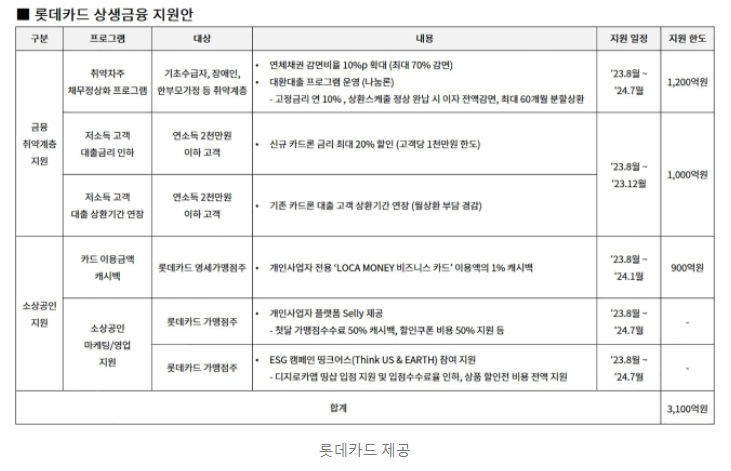 롯데카드의 상생금융 지원안은 오는 8월부터 시행된다.